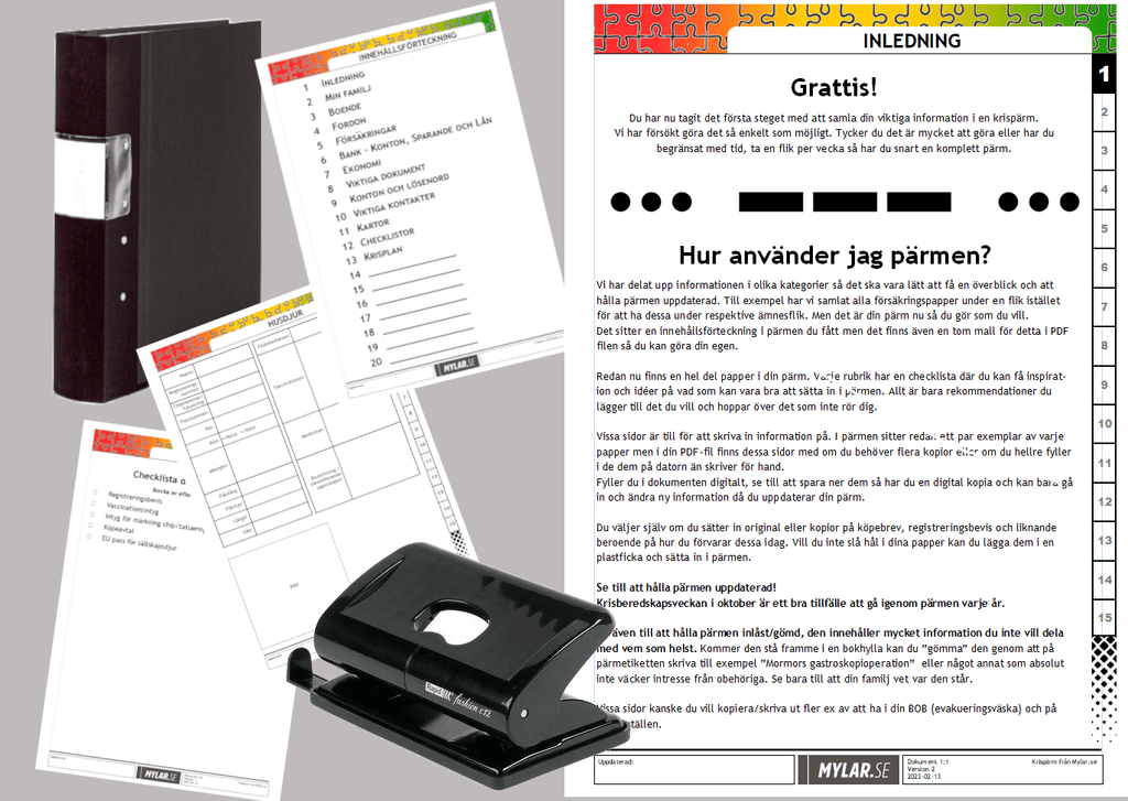 Es gibt eine Menge Papier, das Sie in den Ordner stecken müssen. Wenn Sie zu Hause keinen Locher haben, empfehlen wir Ihnen, den Ordner mit Locher zu kaufen. Die von uns verschickten Unterlagen sind selbstverständlich bereits gelocht. Der Locher ist für Ihre Versicherungspolicen, Kaufverträge, Passkopien etc.