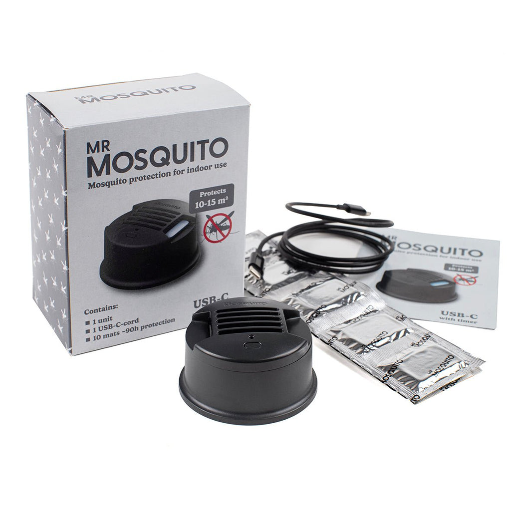 Mückenschutz für den Innenbereich! Jetzt ist der neue MR Mosquito da, ein aktualisiertes Produkt mit neuem und frischem Design. Endlich können Sie lästige Mücken vermeiden, wenn Sie schlafen gehen, am Computer arbeiten oder Ihre Lieblingsserie streamen. MR Mosquito schafft mückenfreie Zonen im Haus, im Ferienhaus, auf dem Boot und im Wohnmobil. Das stilvoll gestaltete MR Mosquito-Gerät ist ein effektives, leises, geruchloses und benutzerfreundliches Produkt, das Mücken in Innenräumen abwehrt. Lässt sich einfach mit einem USB-C-Kabel beispielsweise an einen Computer oder ein Wandladegerät anschließen und schützt einen Innenbereich von ca. 10–15 m². Eine Kontrollleuchte leuchtet auf, wenn das Gerät aktiviert ist. Das Produkt ist mit einem Timer ausgestattet.
