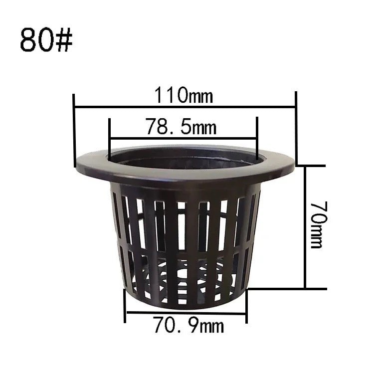 Ein schwarzer Dübelkorb für Löcher mit 80 mm. Für diejenigen, die größere Pflanzen mit vielen Wurzeln züchten möchten