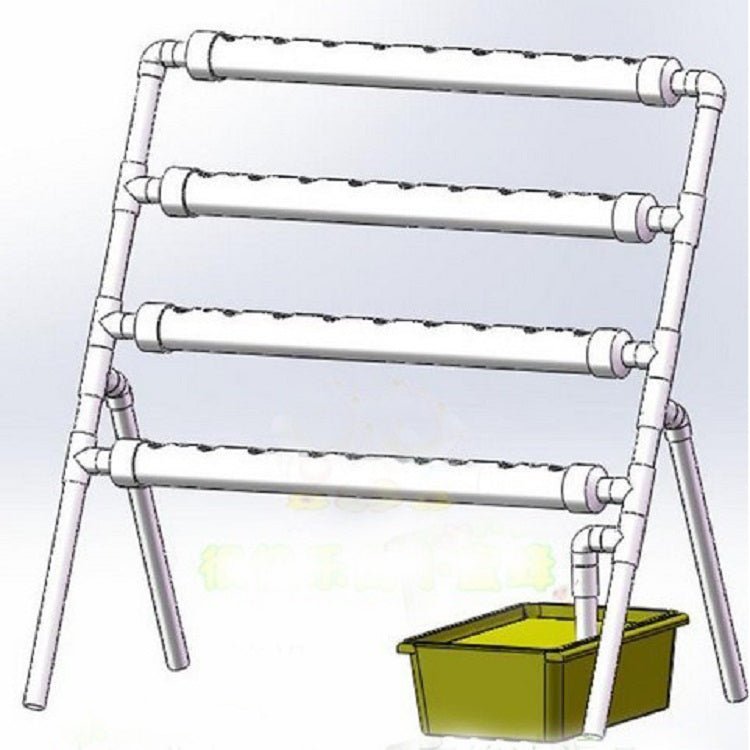 This is an NTF system ( Nutrient Filtration Technology) where the water with nutrients is pumped up into the top pipe and flows down through the pipes to end up in the water tank again. (The water tank is not included, get a plastic box of at least 15 liters. Dark plastic so that algae does not grow in it. Drill holes in the lid with the included drill. (We recommend this box )
