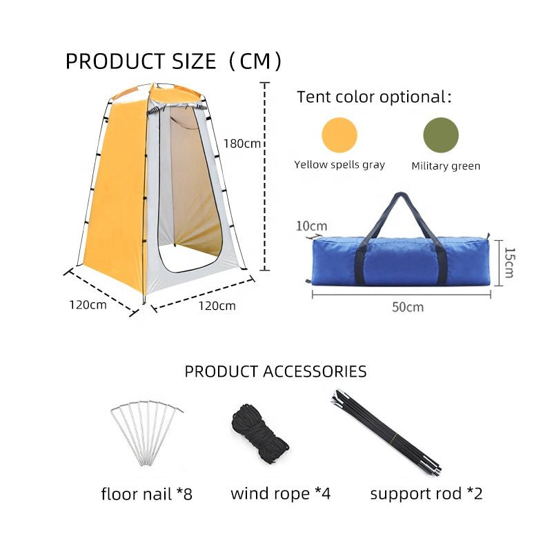Teltan "lattia-ala" on 120x120 cm ja seisontakorkeus 180 cm