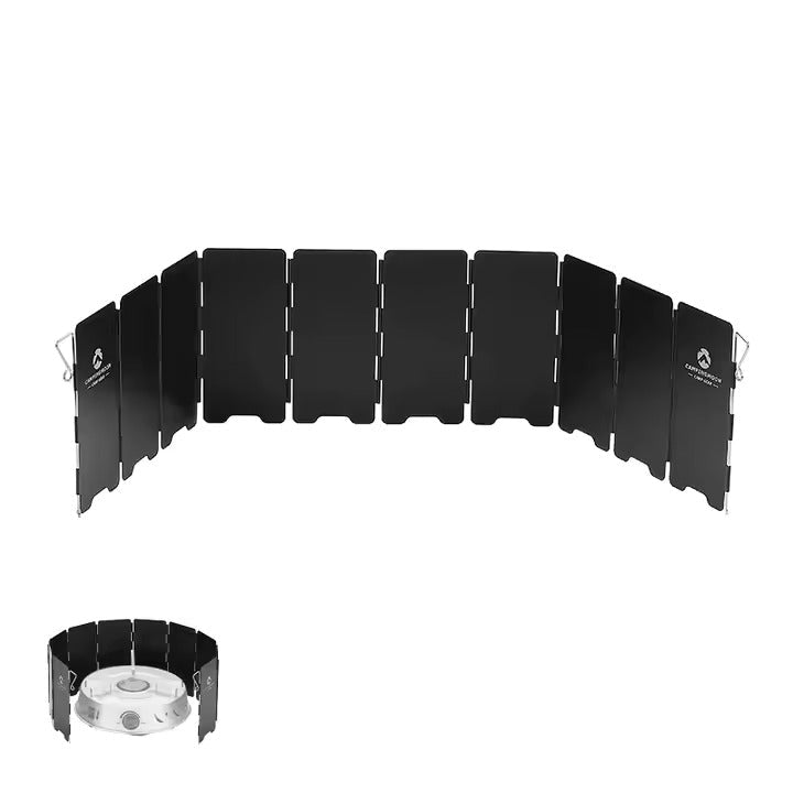 Tämä taitettava tuulensuoja on välttämätön lisävaruste ulkona ruoanlaittoon. Valmistettu kevyestä ja kestävästä alumiiniseoksesta, se suojaa tehokkaasti liekkiä tuulelta ja parantaa polttoainetehokkuutta. Sen kompakti muotoilu tekee siitä helpon kuljettaa ja säilyttää, täydellinen retkeilyyn, vaellukseen ja muihin ulkoilmaaktiviteetteihin.
